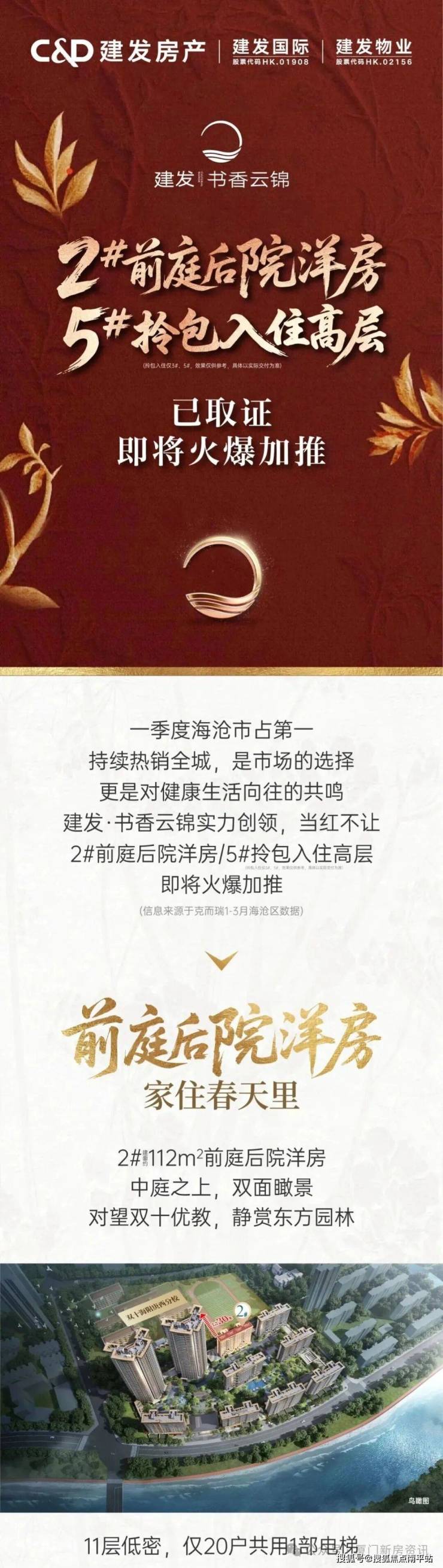 海沧 建发书香云锦, 2.0 低密社区。 交房时间合同签明年年底,快的话明年年中。现在很便宜,前庭后院的洋房112㎡290万,面积送的多,类似四代宅。高层78㎡180万起,91㎡边套210万起。精装中还包含了软装赠送。