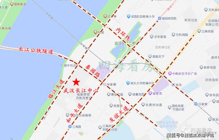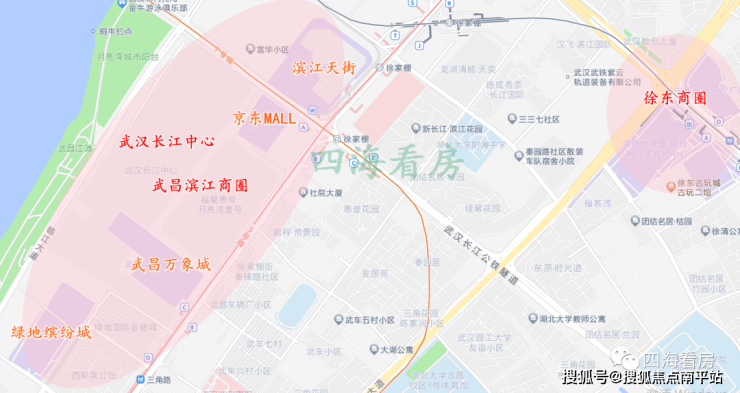 另外,距离项目约一站路就是武昌老牌商圈徐东商圈,同时项目过个桥就是武汉天地商圈、到中北路商圈也只有4公里。