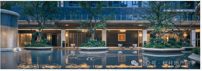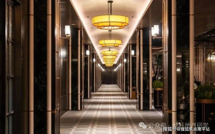 海派风情精奢外立面,以大面积玻璃与铝板相结合,270°弧形转角设计,达到了无与伦比的全景舱视野效果。创新性地将自洁铝板与双银Low-E玻璃结合,使建筑在阳光下呈现波光粼粼的江水肌理,与湘江风貌相映成趣。建筑群沿三环线形成南低北高的梯级布局,通过两条视线通廊的贯通,既消解了建筑压迫感,又构建出"远山叠翠"的城市画卷。