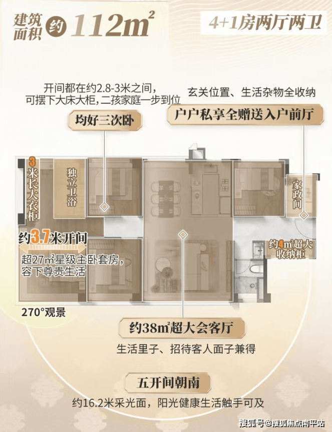 建面约 112㎡的四房,空间大到可以说是同类产品的 Plus 版;
