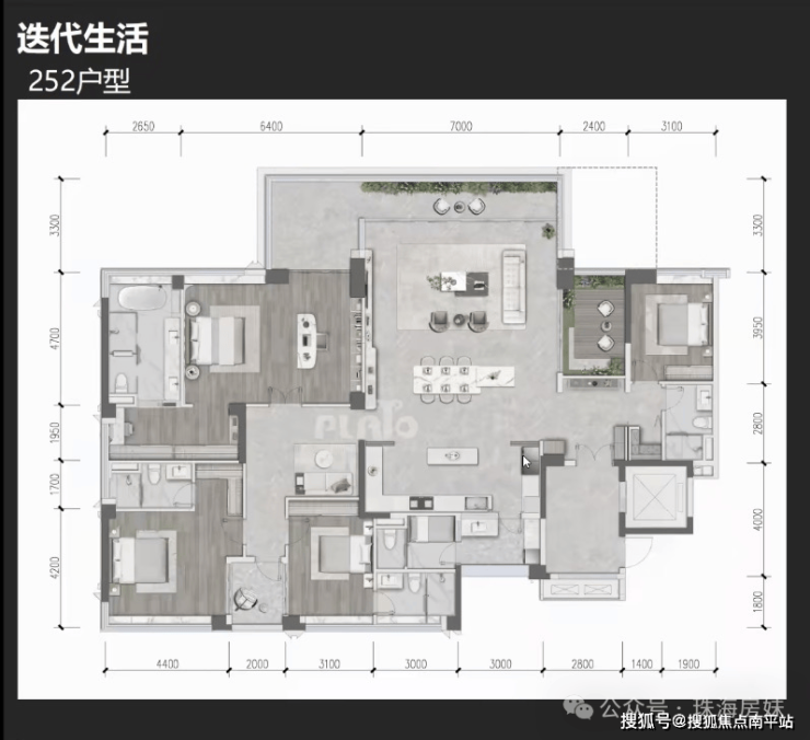 产品面积:建筑面积约121-255㎡ 4房至4+1房