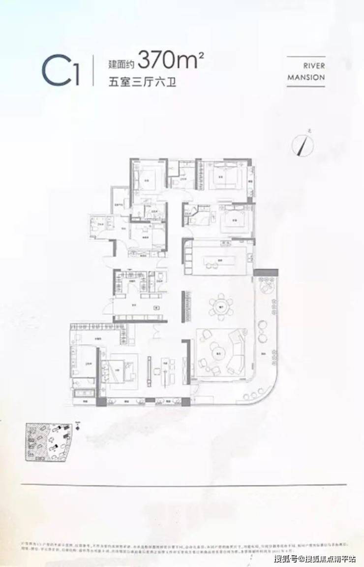 2、户型:220-370㎡江岸大平层