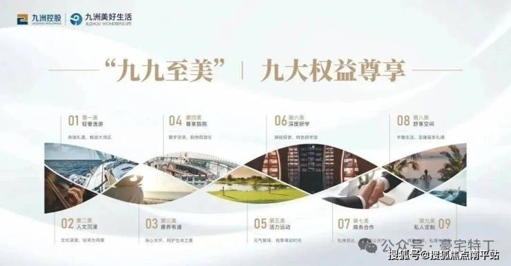 九洲控股集团围绕精英生活打造多种场景和服务,从物质、社交、精神、文化等层面,制定“九九至美”九大尊享权益,给到九美会员全方位体验。