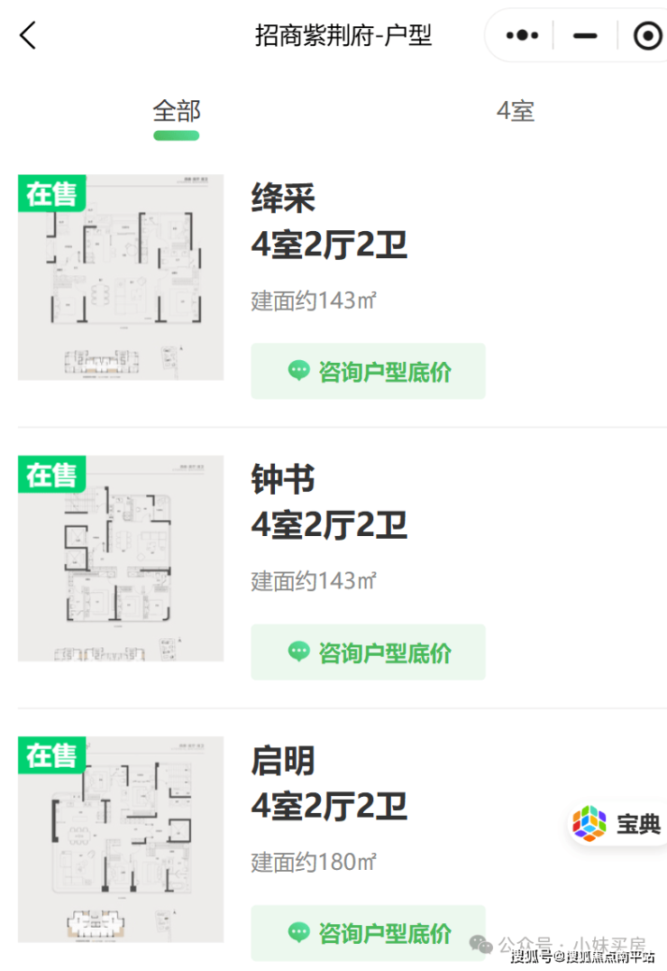 招商紫荆府全盘主打产品均为143、180平两个面积段,其中1、3、4号楼均为143平户型(2种户型布局),2号楼为180平户型,非常纯粹的改善定位。