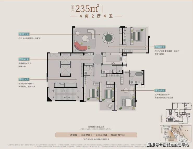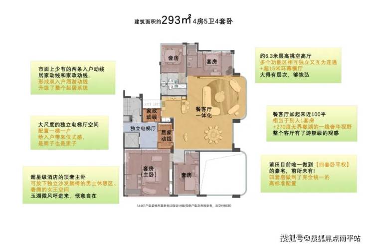 联发建发御湖建面约293㎡户型 私享约 15㎡的独立电梯厅空间, 不同于 常规的密闭入户空间 ,这个户型的入户空间既可以增加储物使用空间。