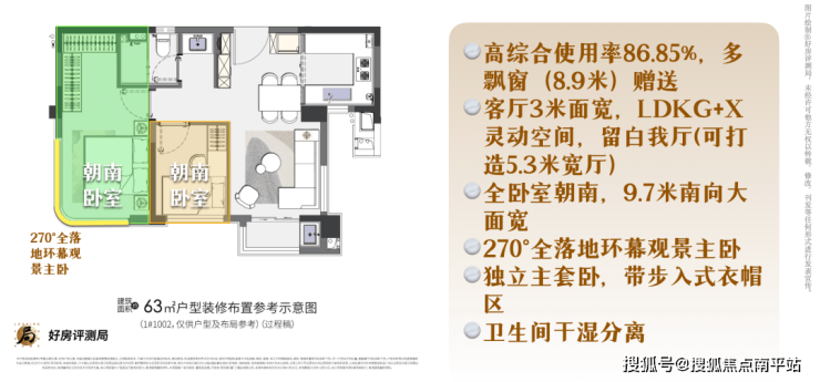 此次更新的户型,其中63㎡,就光下面这个几个标签,以前在120㎡都很难看到,这个户型不用纠结买不买,而是要关心买不买得到。