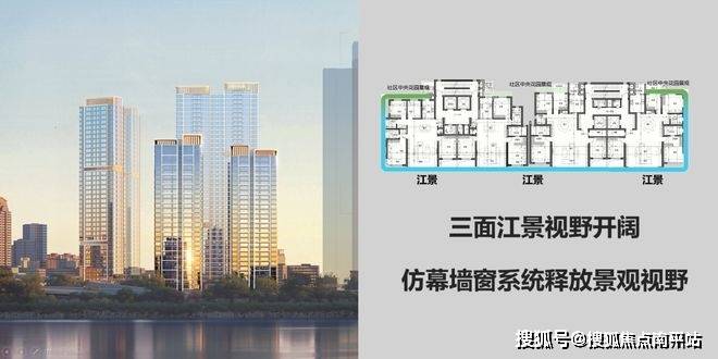 住宅三面江景视野开阔,仿幕墙窗系统释放景观视野,延续沿江界面价值感。