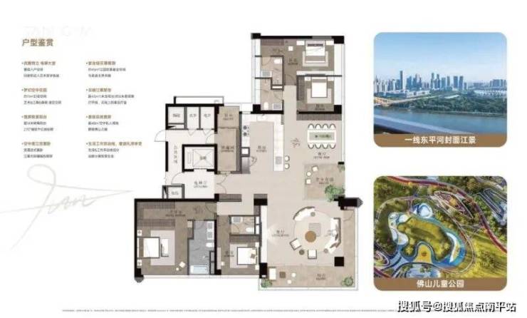 保利秀台天珺的江景资源,堪称佛山“孤品级”存在。项目坐拥东平河、潭洲水道、顺德水道三江汇流景观,7座“空中王国”约345㎡大平层以超330米江面宽度,将“IMAX级”江景视野收入囊中。这种视野尺度,在佛山市场极为罕见,甚至超越了部分一线城市顶豪项目。