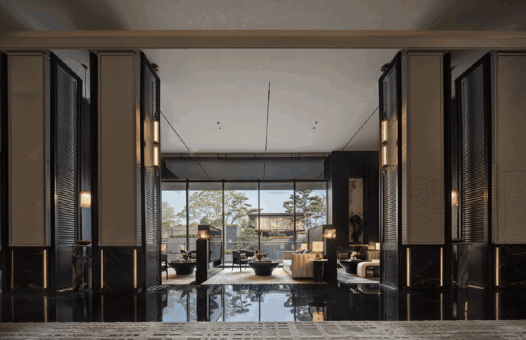 文化之于空间,并非装饰性的符号复刻,而是一种可被体察的存在感。面对春和雲树里售楼处会所空间,麦都无界设计将大连的海风、历史纹理与开放气质,抽离为诸如“松、石、潮、影、花”等带有地域精神的意向,再以当代手法转译进陈设、光线与材质里,并将空间体验设置成一条东方式游园叙事,从礼序抵达,到自然入境,步步转换、层层递进,在游走中感知、在停驻中沉淀。