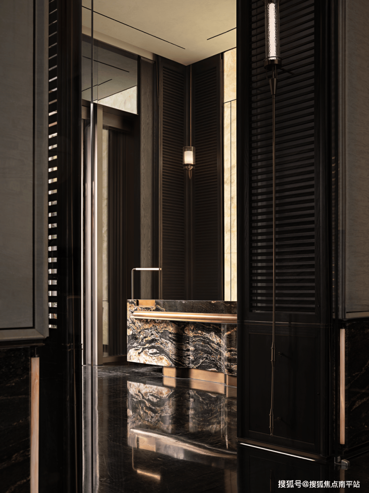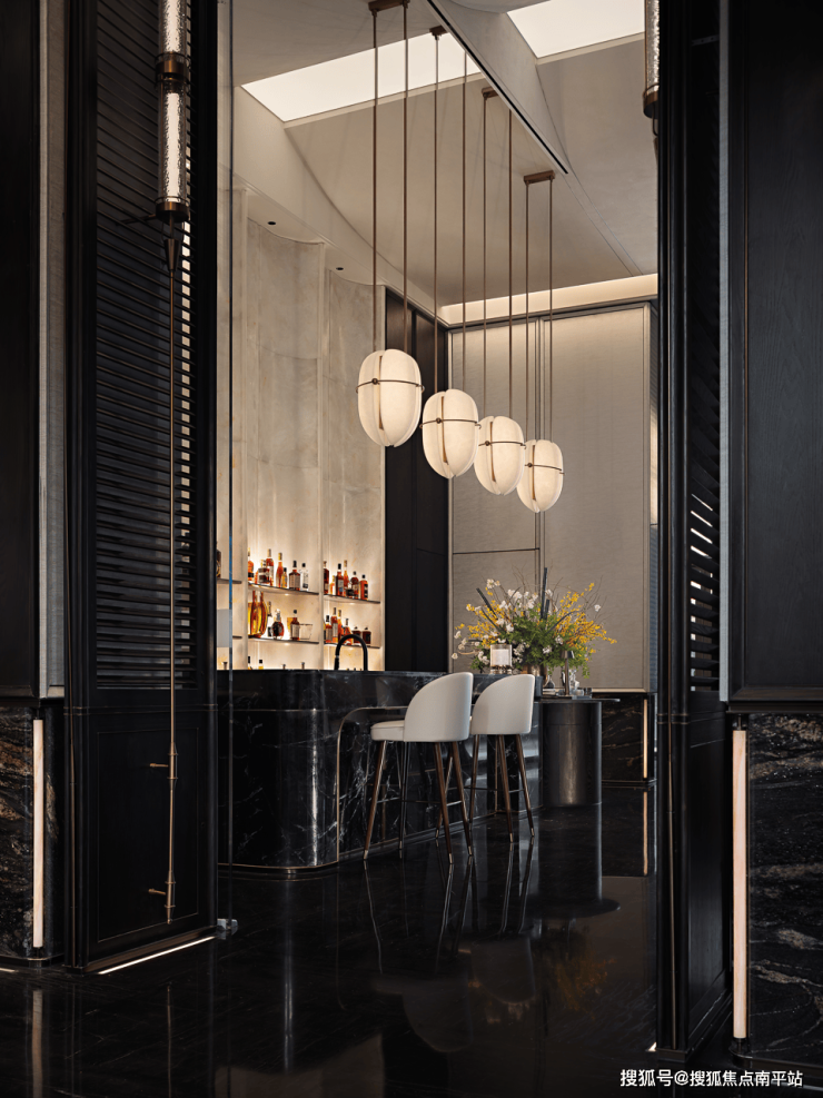 转入水吧区,节奏从“迎与会”过渡到“遇与停”。绿色石材吧台与皮革金属椅让触感与视觉形成对位,月季元素化为光影装置悬于上方,灯体有如初绽的花苞,柔和下垂,这一刻,东方不是符号,而是一种姿态。光在石面上泛起微亮的纹理,气息温润,空间表情也由正式转向亲切,让人愿意停留。✅✅✅售楼处𝗩𝗜𝗣☎️预约热线:400-159-8559转分机号5555【已认证】