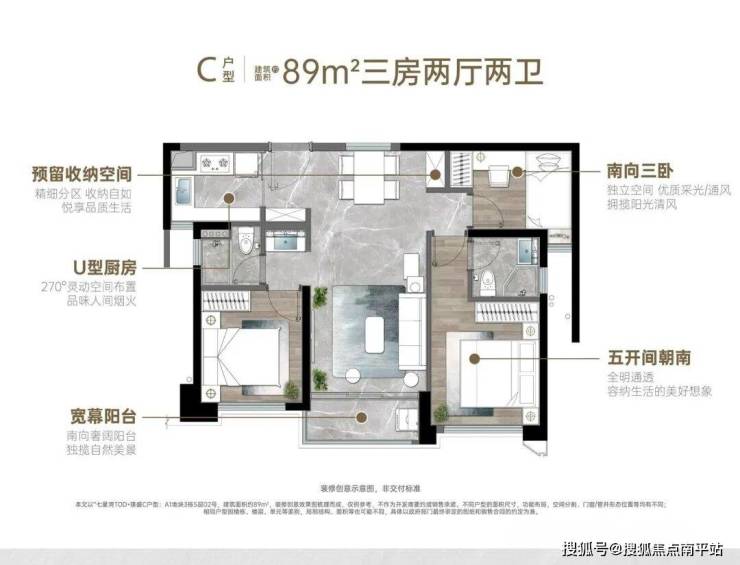 ★89㎡3房2卫(三开间朝南、餐边柜);