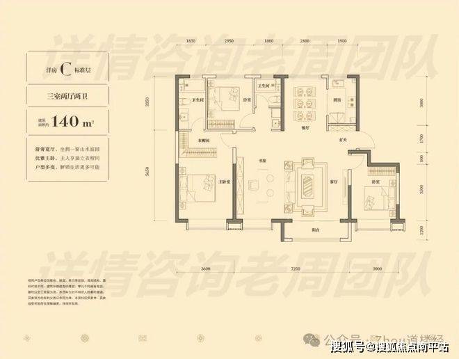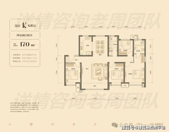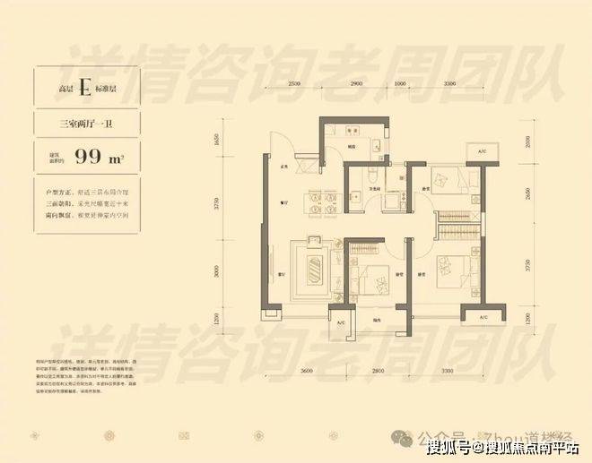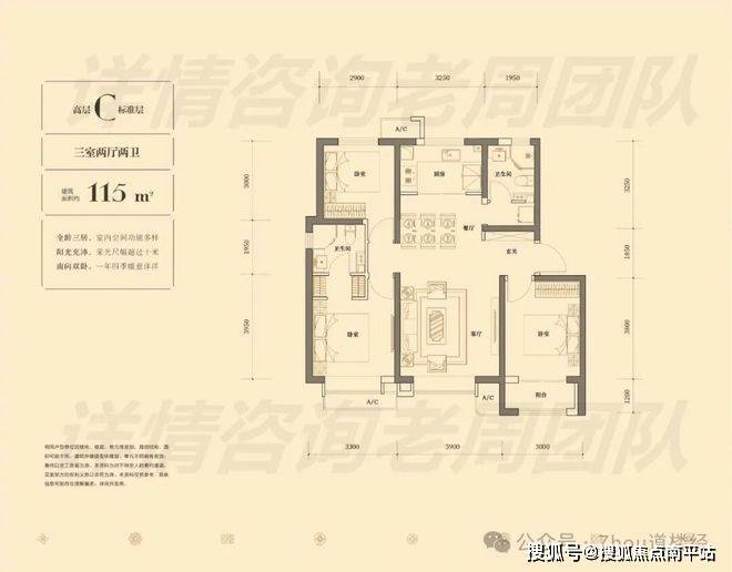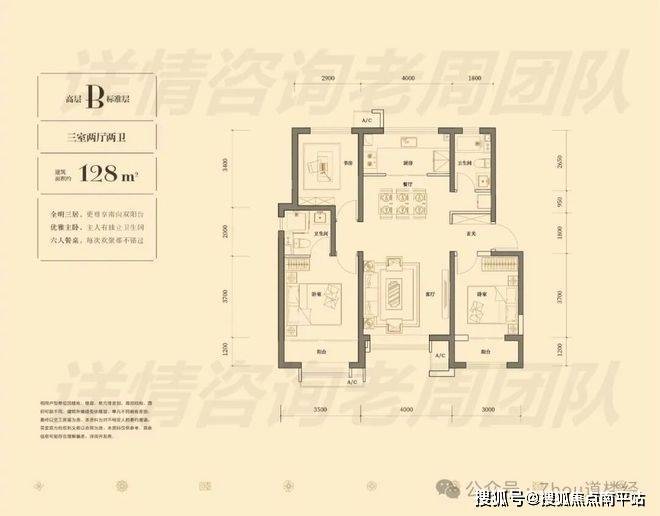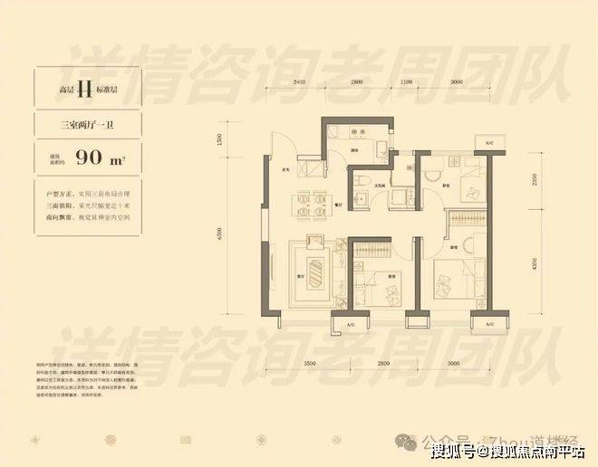 采光尺幅,绝大部分户型拥有3个甚至4个南向房间。