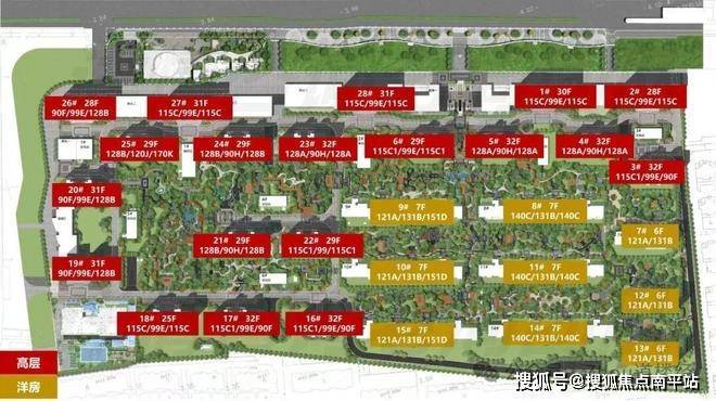 高层:90㎡/99㎡/115㎡/128㎡ 两梯四户、120㎡/170㎡ 两梯三户