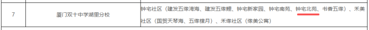 根据厦门市教育局官网发布的《2025年秋季湖里区公办小学招生划片范围一览表》,五缘公馆所属的钟宅北苑片区,划片楼盘隔壁的厦门双十中学湖里分校,与周边的书香五缘,五缘鲤,天琴海等商品房楼盘划片一致。