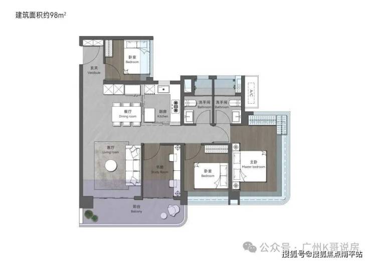 98㎡创意四房两卫,LDKB相融,宽敞餐客空间,承载家人幸福时光