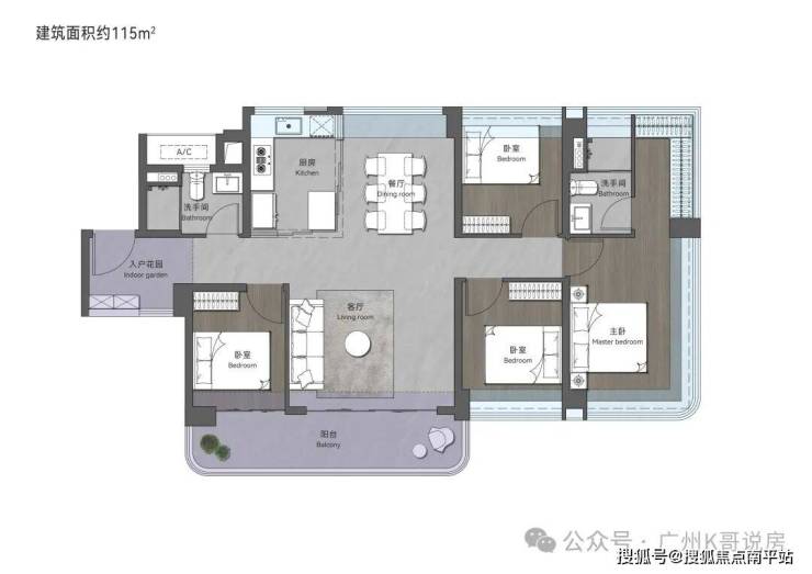 115㎡创意四房两卫,搭配大面积入户花园,归家即享井然有序的从容