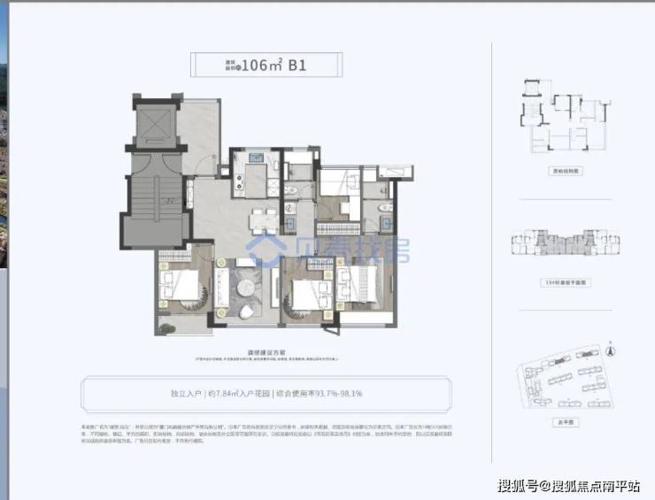 洋房的总高11层,一梯两户,中间106平,边套124平,户户都有入户花园