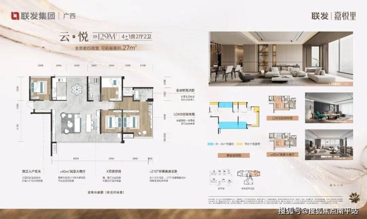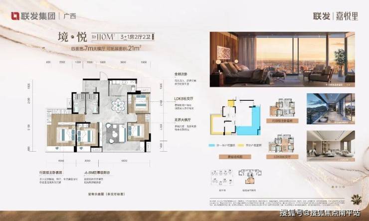 联发·嘉悦里的户型不仅是 联发柳州全新新规户型产品,也是 联发柳州首个全景舱四代奢居产品(建面约169㎡户型),整体南北通透,部分主卧能做到双面甚至三面采光。
