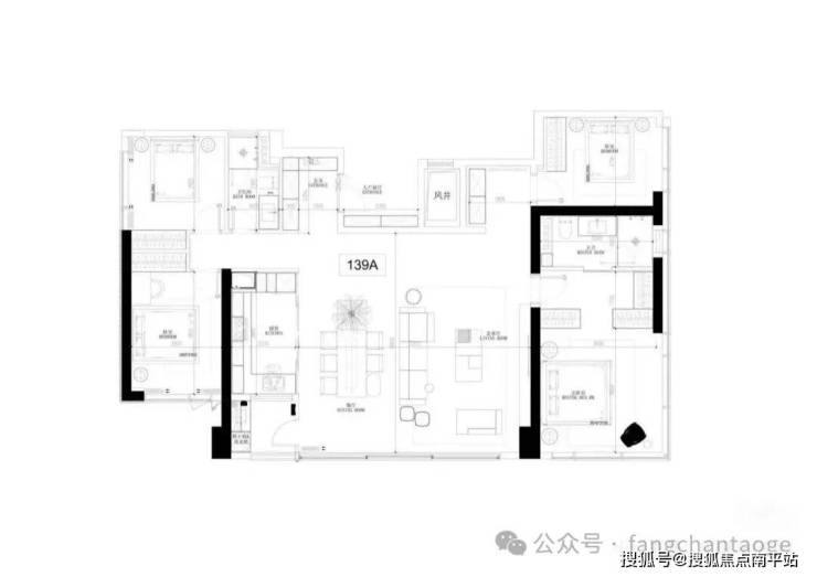 共5栋楼,总高56-58层,首推1/5栋,1栋57层,43层以下是两套176方的,45-57层是一套248方的,5栋是塔楼,一户139,两户165,超新规产品,得房率据说有130%。