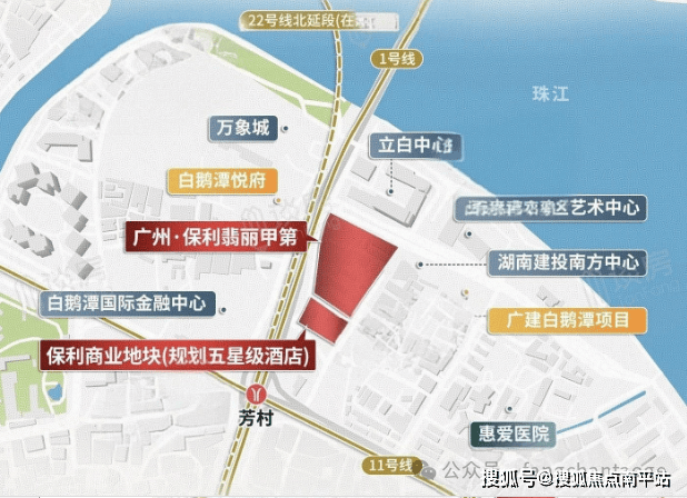 地处主城区三江汇聚的重要地段,附近坐落着重点文化街区如沙面、永庆坊等,还有已开放的白鹅潭大湾区艺术中心(三馆合一),人文资源出彩。