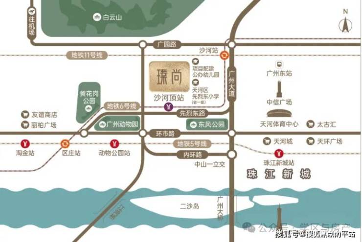 项目距离 6号线沙河顶站B出口约500米 ,1站至沙河站换乘广州大环线11号线,2站至区庄站换乘东西大动脉5号线。3站淘金,6站北京路、珠江新城,一线直达琶洲, 通达度很高。