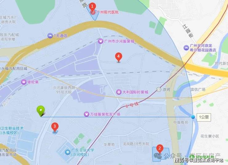 项目一公里范围内有 广州现代医院、南方医院白云分院(沙河院区) 。