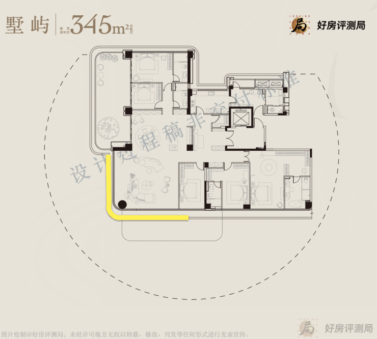 关注300-430㎡的客户一定是全国级的,所以御宸天悦从大事业家角度,深度考量每个空间,以345㎡为例。