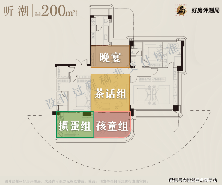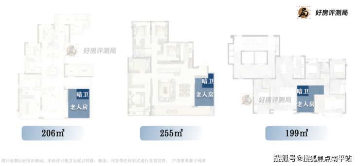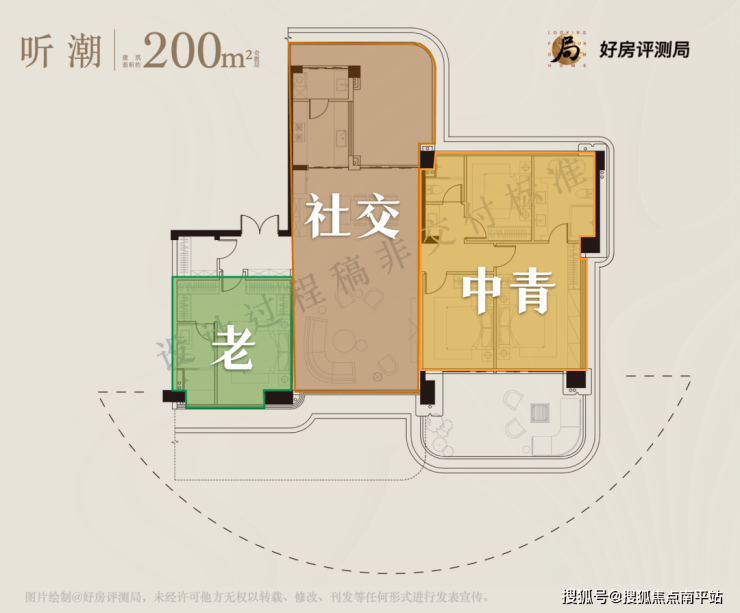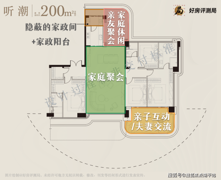 高质量的家庭=全家相聚+合适距离。分层理念是当下大平层的主流,但多数大平层的“分层布局”只是实现的动线上的分隔,都忽略了老人房的体面。