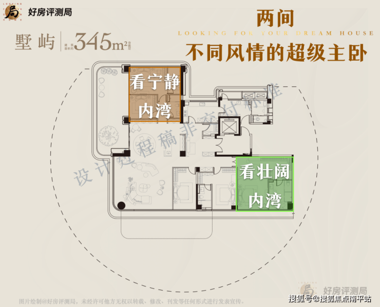 我们以3-4米为一个景观面系数N,此前300多平户型,差不多在6N,那么御宸天悦345,几乎能从9个角度收藏不同的五缘湾。