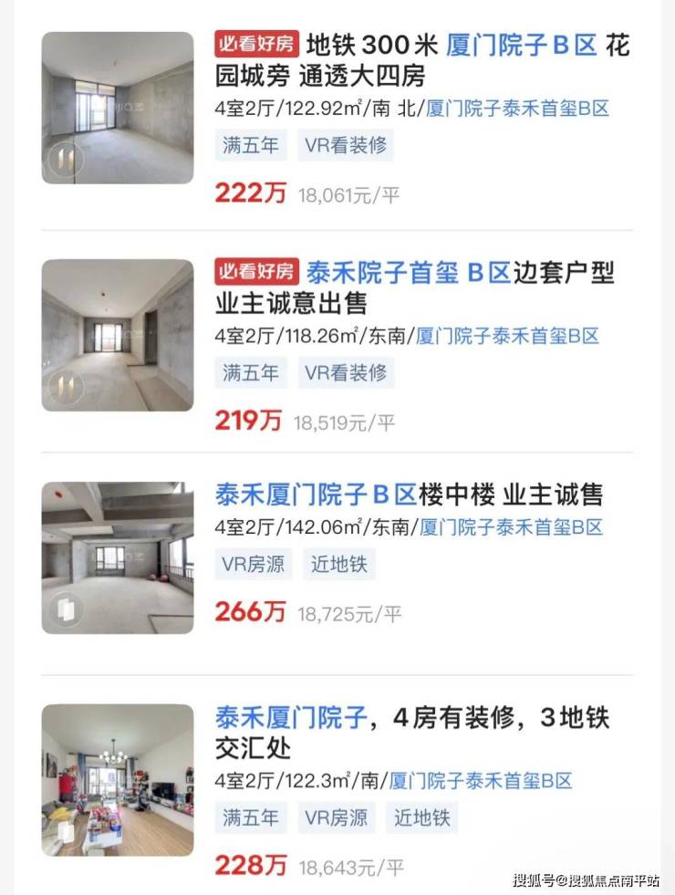 二手房可以买到的4房,总价也都不低。泰禾厦门院子挂牌4房总价最低的是219万,毛坯,超高层,公摊比较大。如果算上二手交易的费用和装修的费用,首付资金差不多是买联发臻华府二期100平洋房的两倍了。