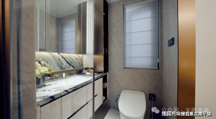 ○收纳柜和洗浴柜台面升级为天然翡翠大理石(部分),营造高级感。