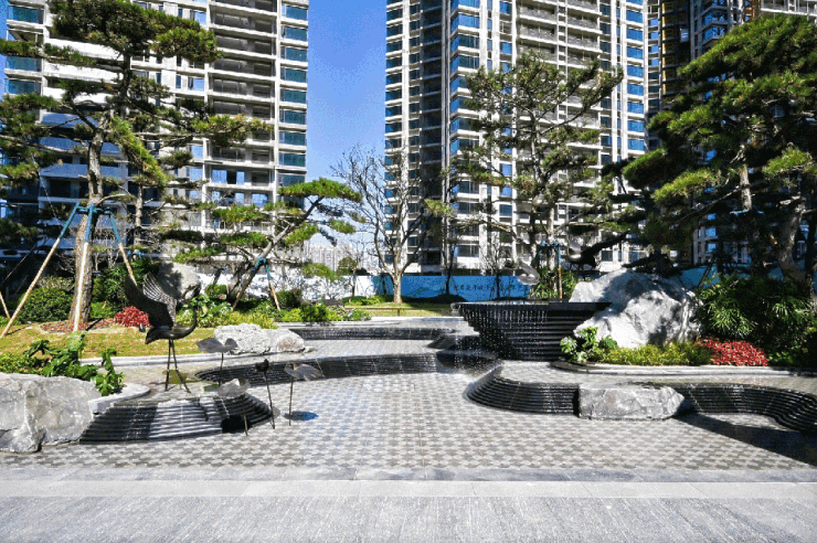 最让我惊艳的,还得是“一鹭莲科”那个景观,油松、水景、鹭鸟等,画面感很强,据说这些 油松都是从山东运来的, 1棵就超十万元,琅悦足足种了18棵,光这一项就投了 近两百万,为了景观品质是真下血本了。