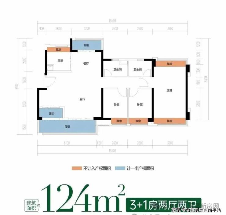 建筑面积约124㎡改善型四房 | 双阳台五开间朝南!