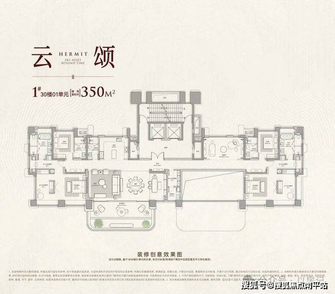 •主打建面约198-575㎡大平层及复式产品,均为第四代生态住宅,户户配置空中花园或露台,部分户型赠送6.8%-20%的露台面积;