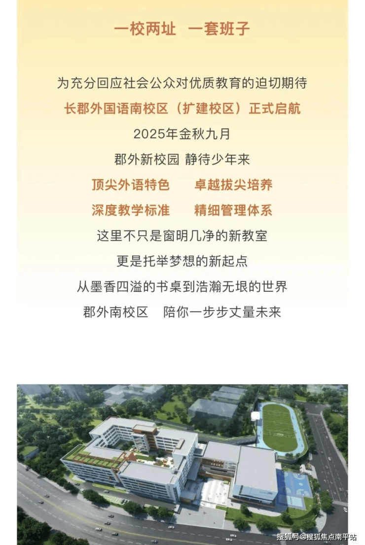长郡外国语实验中学南校区,是天心区政府重点打造的“高起点、高标准、高品质”公办初中,与长郡外国语实验中学一脉相承,五统一原则,实行100%零差异化办学,4.35万㎡现代化数字校园,配备AI教学系统、VR实验室等,构建了全方位满足学生发展需求的学习生态。