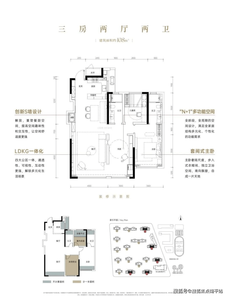 长沙首个S墙设计,4.3m客厅可变7.3m大横厅,在108㎡实现实际享受的空间感与舒适度,堪比以往的120㎡+。