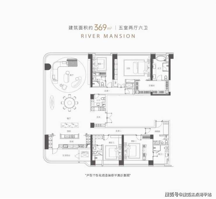 369㎡户型:五室两厅六卫