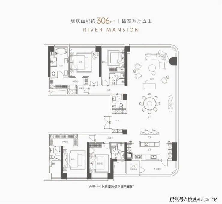 306㎡户型:四室两厅五卫