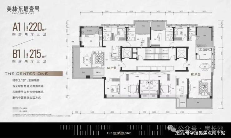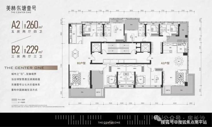 定位为长沙主城芯首家新规高赠大平层豪宅,拥有约150米超高颜值立面,标注东塘新地标,打造建筑面积约210-270㎡健康科技精装大宅,重塑长沙豪宅想象。