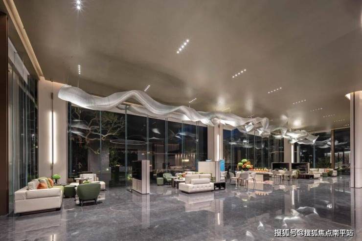吊饰融合了设计美学与本土文化,灵感来源于莆田木兰溪,形成独特的水流元素,象征着项目伴水而兴,因水而美。以水为载体,转化为空间的艺术装置,吊饰以柔美的水之形态,轻盈盘旋于空中,展现了自然之美与人文之美。