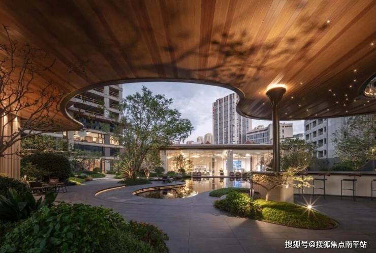 配备水吧台、波浪景墙,配合流动的水景,既现代又雅致,多维度沉浸式感受“赏花、闻香、听泉、品茗、拾趣”的雅韵氛围,成为邻里社交的弹性载体