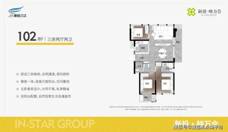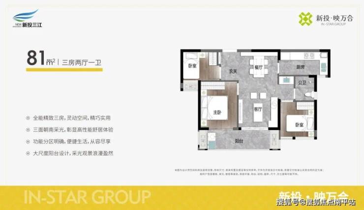 在户型设计上,新投・映万合聚焦建筑面积约 81-114㎡的三至四房,既尊重青年群体的预算限制,又为家庭全生命周期成长预留空间。