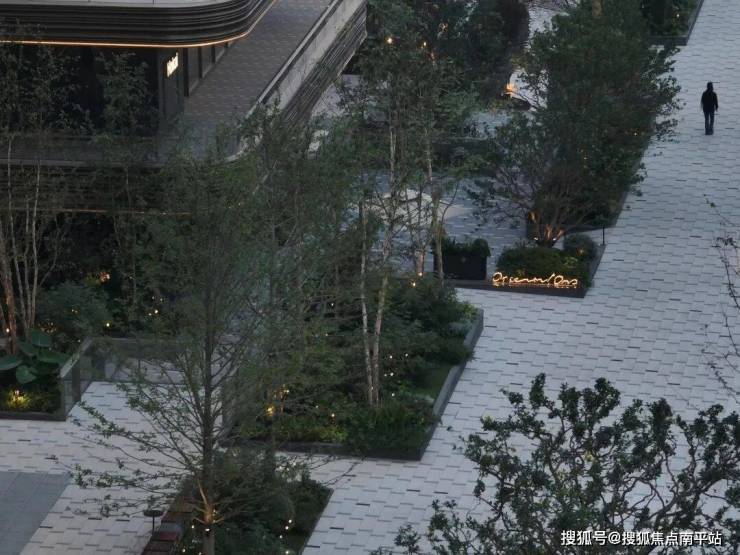 商业景观通过微地形差异与边界设计,分割并整合了外摆区与休闲平台,形成丰富的空间层次。同时,口袋花园与庭院空间交错嵌入商业配套建筑,塑造出景观与建筑相互渗透的空间体验。