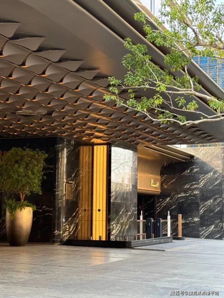 项目入口处打造酒店式落客流线,入口处约8米悬挑雨篷提升了门庭前场的气势,展现了高门大户的尊贵气度。