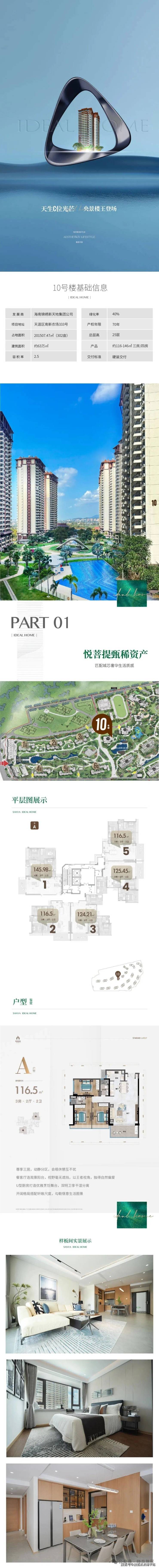 10号楼坐拥山、海、园三重稀缺视野,户户皆景,推窗即见三亚湾醉美夕阳。社区主入口近在咫尺,下楼即达1200㎡无边际泳池,5分钟步行至会所与幼儿园,生活便捷与度假仪式感在此交融。