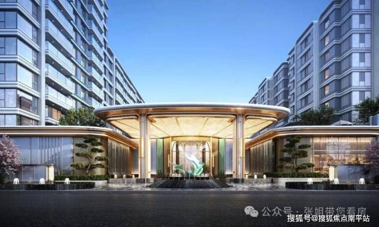 绿城·玉百合打造的开阔舒展的酒店式归家前场,约80米的宽阔尺度奠定大气格局,百合花型的门头与「百合含露」主题雕塑相呼应,在舒展的前场空间中自然流露尊崇气度,赋予归家第一眼以仪式与意境。