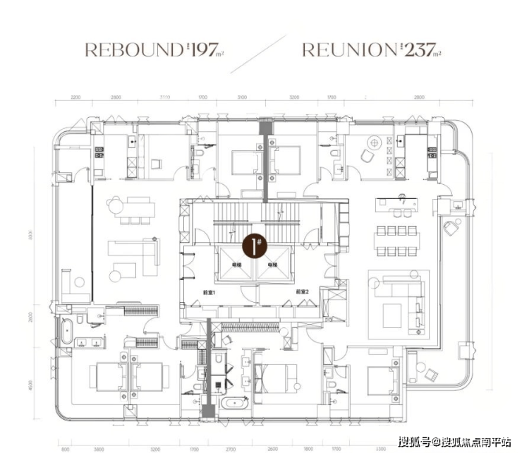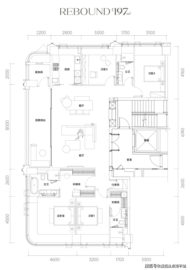 项目主力户型为197-235㎡四房大平层。