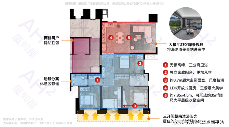 建面约143㎡户型(下文简称143㎡),作为岛外的高级改善产品,它既做到了对外部资源的深度融合,也从静谧性、尺度感、隐私性几个角度为生活日常完美解题。