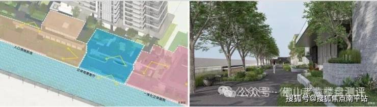 其次,在公区设计打造上,项目地势抬高约3米,打造观景平台,巧妙融入宝华涌一河两岸景观。