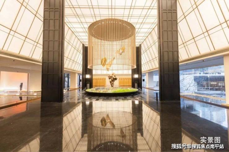 近50米长约10米高全奢石门庭,墙面地面均由全奢石铺贴;约8米高艺术屏风阵列迎宾,由日本安缦酒店同款夹宣玻璃打造而成的艺术穹顶,营造出典雅、庄重的氛围。